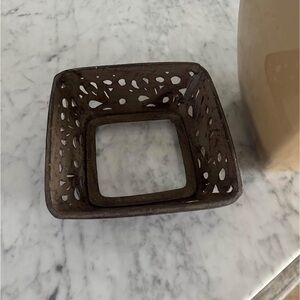 Gracious Goods GG Waste Basket. 10” x 7.5” x 7.5” Earthenware ceramic canister aluminum base. No chips, cracks, glazing. It is in excellent condition and a wonderful, high end home brand.