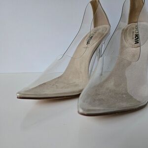 Fashion Nova Clear and Beige Heels