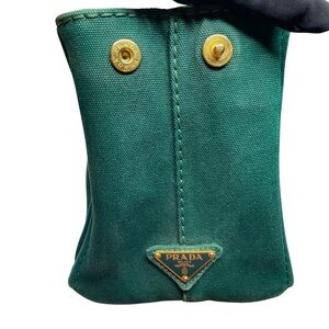 Authentic PRADA Canapa Tote with Gold Hardware & Crossbody Strap - Green Canvas