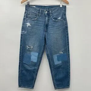 Gap High-Rise Patch Distressed Barrel Jeans Size 26 Petite