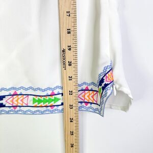 Great summer top in a lightweight stretchy white fabric. Embroidered trim, side zip and open back. New without tags and in like new condition, showing no signs of wear and no flaws. Size Large.