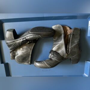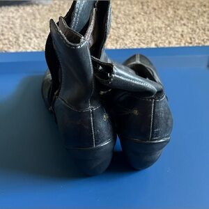 Elevate your style with these chic black leather women's shoes. Perfect for any occasion, these shoes offer both comfort and elegance. I thought there was some kind of white coating on the shoe until I realized it’s part of the shoe color. Good condition.