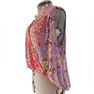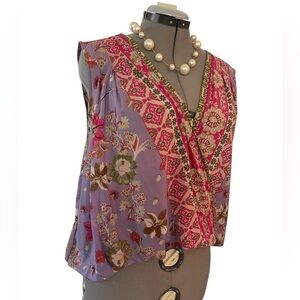 Free People Havana Blue Floral Print Sleeveless Surplice top, sz large
