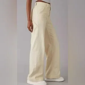 American Eagle AE Dreamy Drape Super High Rise Baggy Wide Leg Pant Stretch Cream