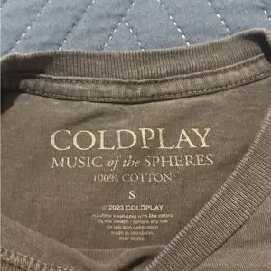 Coldplay Alien Radio graphic tee in dark gray. Features colorful space-themed design. Never worn