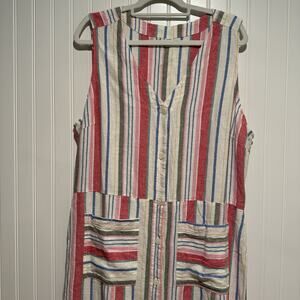 Old Navy Striped Linen Blend Dress Sleeveless Size XL