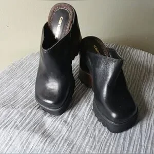 Candie's Black Leather Mules Classic Slip-On Design / Woodem Wedge Heal / Size 5