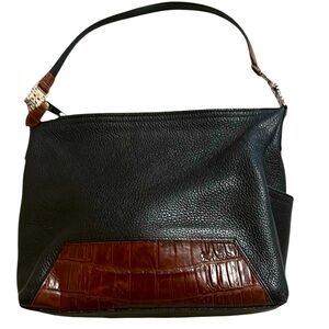 Brighton Vintage two tone handbag, brown / black , silver handle insets 11”x9x4”