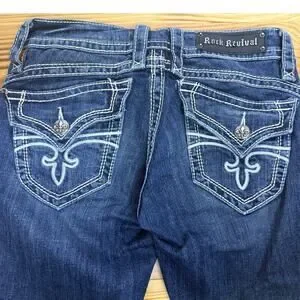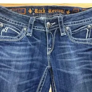 ROCK REVIVAL Y2K Low Rise Heather Boot Cut Flare Denim Jeans, Size 28x32