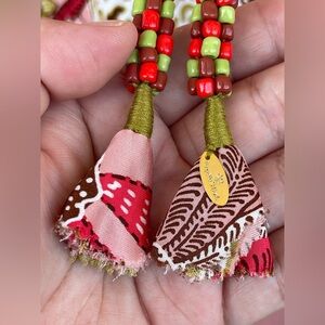 Short kimono sleeves. Cascading to ankle length. Deep V neck with subtle indentation at the sides. The waist cinches by a sliding tie finished with colorful tassels. Handmade.
