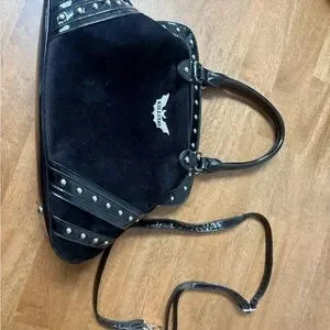 The Killstar Black Shoulder Bag combines edgy rock-inspired design with functionality, featuring striking silver studded accents and a bold metallic emblem. Crafted from soft, durable materials, this bag offers a slouchy silhouette and sturdy black handles, making it a standout accessory for any occasion.