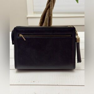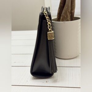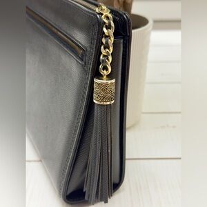 New Vintage VLTN Black Leather Clutch w Tassel