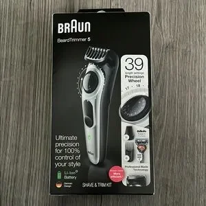 Experience precision grooming with this sleek black and silver tool, offering 39 adjustable length settings for a tailored trim. Its ergonomic design ensures comfortable handling, while the modern aesthetic adds a touch of sophistication to your grooming routine. New In Box !