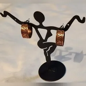 These elegant copper earrings feature a charming heart pattern. stainless steel posts. perfect for lower earlobe or mid ear cuff piercings. vintage