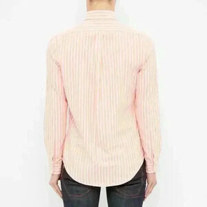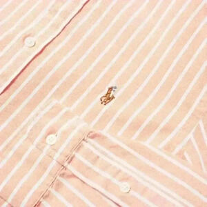 This Ralph Lauren men's button-down shirt in a soft pink hue with classic stripes offers a refined look with a custom fit. Perfect for both casual and formal occasions, this shirt features a collared neckline with button details and long sleeves with barrel cuffs. The premium quality and iconic Ralph Lauren style make it a wardrobe staple for any man seeking a versatile and polished look.