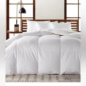 @kristabelle12 it’s in decent condition, no tears or stains but it’s not bright white from normal usage, price reflects. it’s medium wt, fairly heavy , great for fall/winters. didn’t find use for it here in Hawaii so it’s been sitting in storage