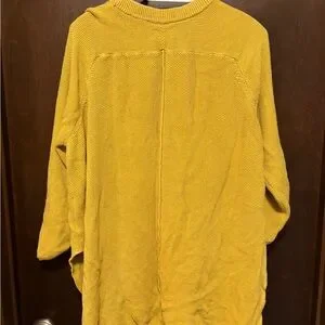 Embrace comfort and style with this vibrant yellow crew neck sweater. Its soft fabric and relaxed silhouette make it perfect for everyday wear, adding a pop of color to your wardrobe. The sweater's warm mustard hue and slightly longer length offer a cozy, casual look.