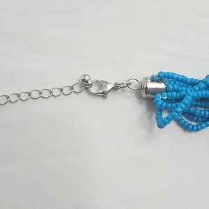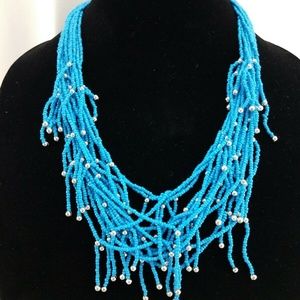 Turquoise Multi Strand Seed Bead Statement Necklace with Silver Accent Bold