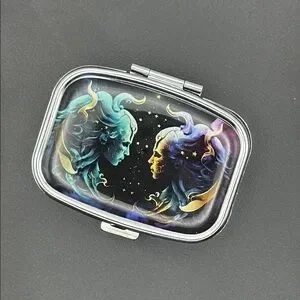 Gemini Zodiac Multi-Use Mirrored Pill Box Container
