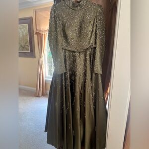 Olive Green Beaded Formal Gown