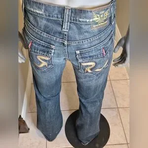 Faded blue denim with a modern look. Perfect for casual outings. Waist 34 Inseam 36. Rock & Republic logo on back.
