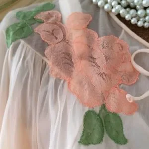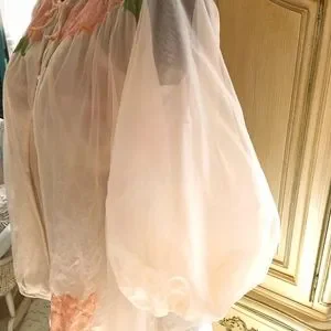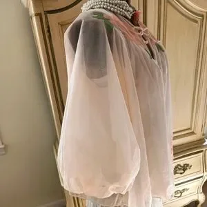 This elegant sheer top features beautiful floral embroidery, perfect for adding a touch of sophistication to any outfit. The soft pink hue complements the delicate design, making it a versatile piece for various occasions.