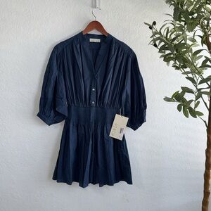 Smocked Half Button Three-Quarter Sleeve Mini Dress