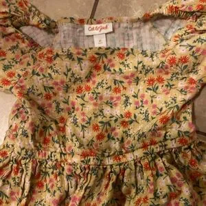 This casual sundress by Cat & Jack features a vibrant orange and red color palette, perfect for a relaxed day out. The dress boasts a scoop neck and charming puff sleeves, adding a playful touch to its design. Its lightweight fabric and comfortable fit make it an ideal choice for warm weather.