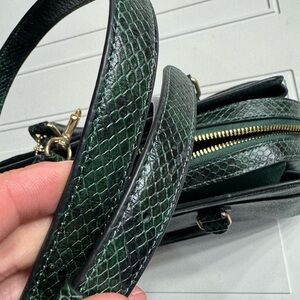 Coach Darcie Green Pebbled Leather Snake Skin Handles Carryall Bag Excellent