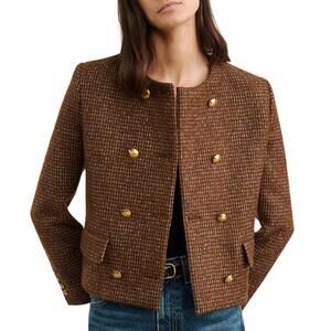 Thanks for checking out our fabulous Posh closet!! All of our items are new with tags! Never worn or used <3 - Description: An elevated version of your favorite classic blazer.Nili Lotan Melanie JacketItalian Wool Houndstooth in Saddle CheckDouble breasted collarless jacketCropped, boxy silhouetteHoundstooth knitGold crest buttonsFlap pocketsLightly structured shoulder padsFully linedSize 2 Length 21”True to Size Dry Clean - Because all of our merchandise is brand new and often times in original packaging, extra photos or measurements cannot be provided - Heads-up that color shades may vary due to the photo lighting - We always put the color name in the title - All items are final sale - Thank you so much for shopping! We appreciate you :)