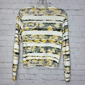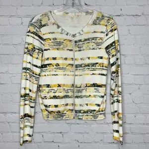 Anthropologie Moth Array Floral Striped Zip Front Knit Cardigan Sweater
