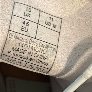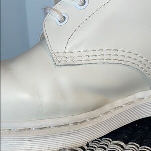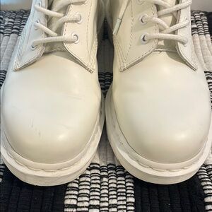 Stand out in these eye catching white Dr Martens. Color is an almost off white, white. The laces and soles are also white. Men’s 11, regular fit, can feel tight if needing a wide fit.