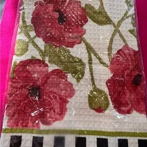 NWT, MacKenzie-Childs adorable 100% cotton waffle weave Poppy Dish Towel