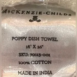 Add a little country charm from the MacKenzie-Childs Aurora farm to your kitchen with this beautiful Poppy Dish Towel. A field of bold blossoms, bordered by chic checks and a stripe with the MacKenzie-Childs thistle logo.