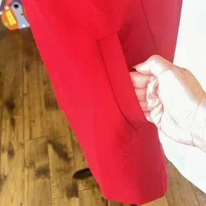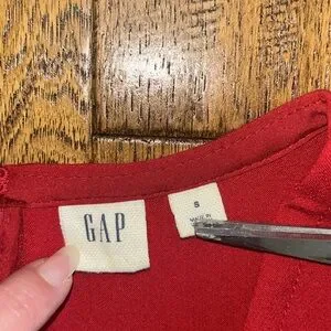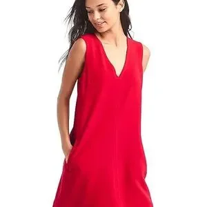 Sleeveless red shift dress from Gap in excellent condition. Size Small. Deep V. Full zip in the back. Pockets. Material tag is cut out. Cotton/Polyester blend? See pics for measurements. Appears to run big! Smoke free home.