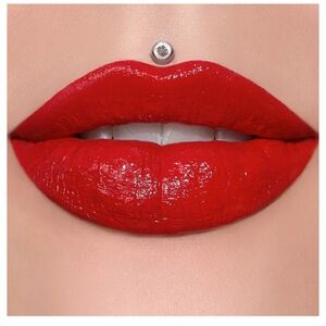 Experience the bold allure of Jeffree Star's red supreme gloss, featuring a glossy finish that enhances lip fullness and provides a creamy, moisturizing texture. This classic red shade with warm undertones offers precise application and full coverage, perfect for making a statement.