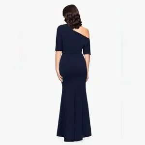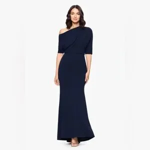Betsy Adam Women’s 6 Madeline long maxi scuba crepe off the shoulder drop dress