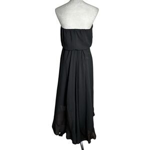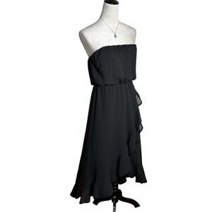 Dress The Population Black Chiffon Ruffle Hi-Low Strapless Cocktail Dress Small