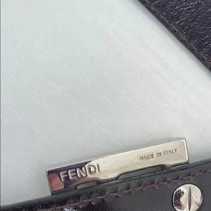 Authentic Fendi shoulder bag with signature monogram pattern. Features a stylish silver buckle and adjustable strap.