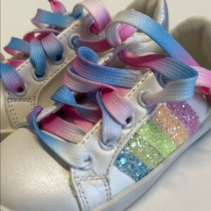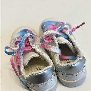 These sneakers feature a sleek white base with playful pink accents, offering a sporty yet casual look. Designed for comfort and style, they are perfect for everyday wear with their low-top silhouette and durable rubber sole. The slip-on or lace-up design adds versatility to these trendy shoes.