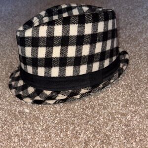 Elegant black and white hat by Charming Charlie. Features a classic checkered pattern.