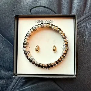 Elegant Tri-Tone Bracelet and Stud Earrings by Nine West (NIB/NIP)