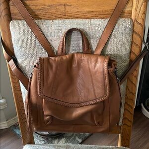 Aimee Kestenberg Tan Leather Backpack with Braided Trim