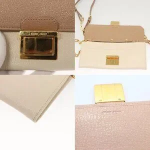 Miu Miu Chain Wallet Leather Pink Gold Auth am8441