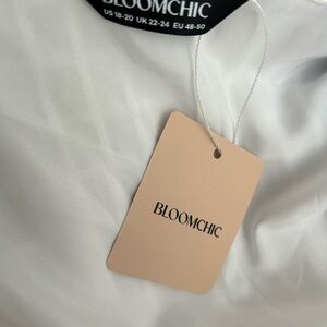 Pure cotton makes this perfect for this scorching summer days. Babydoll style with square neck. Black embroidered flowers on jacquard fabric. It is lined so it is not see through. Not stretch. From BloomChic. Size 18/20. 100% Cotton. Lining 100% Polyester. Machine wash. Only worn to model. Has tag. From smoke free home.