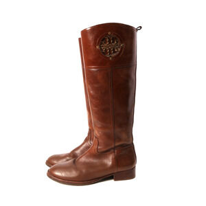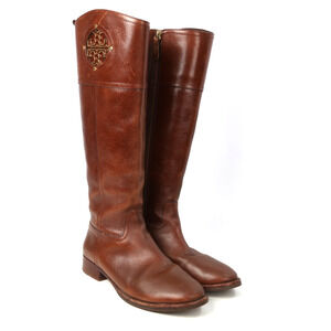 TORY BURCH Kiernan Riding Brown Leather Logo Knee High Boots Size 7M
