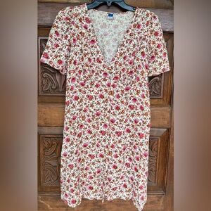 Old Navy Floral V-Neck Short Sleeve Button Down Dress. Size Medium. EUC.