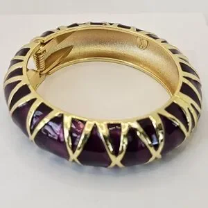 Authentic Vintage KJL Plum Metallic & Gold Clamper Bracelet.