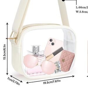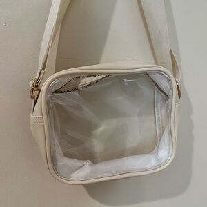 Brand new cream crossbody bag with a clear front panel. Perfect for everyday use and stadium compliant!