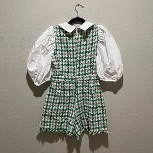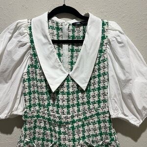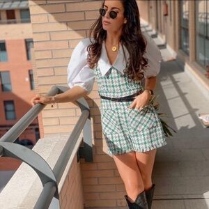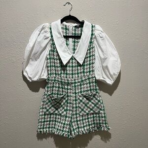 Zara Blogger Favorite Green/White Cotton Tweed Romper Size Medium M